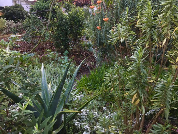We've had a Strelitzia nicolai and a Yucca removed in the front garden (a mulberry, potato bush and ficus benjamin still remain). In the back garden we still have a massive Yucca alongside a cypress, loquat, potato bush, New Zealand laurel, acanthuses, Indian hawthorn and bougainvilleas. I removed two Cestrum laevigatums and a few other smaller invasives. Our maintenance focusses on the removal of different invasive grasses and insects (particularly weevils) and providing space for indigenous insects, grasses and sedges to flourish.