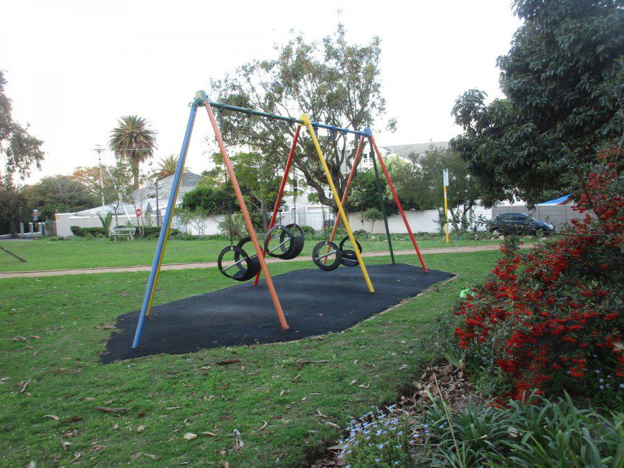 Cecil Park is located on a corner between Rhodes Avenue and Cecil Road. The park contains a grass field in the centre with swings and benches. There are various trees on the plot as well. On the sides there are beds with a large variety of plant species. Some are indigenous, some are not. Local resident Jacques Claasen is very active in maintaining the park and he is continuously planting new species and looks after the plants.