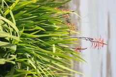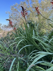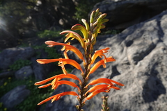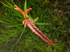 Chasmanthe floribunda is an attractive bulbous plant upright splay of tubular vibrant orange flowers, usually found on slopes and rocky outcrops. A variant with yellow flowers is called var. duckittii.