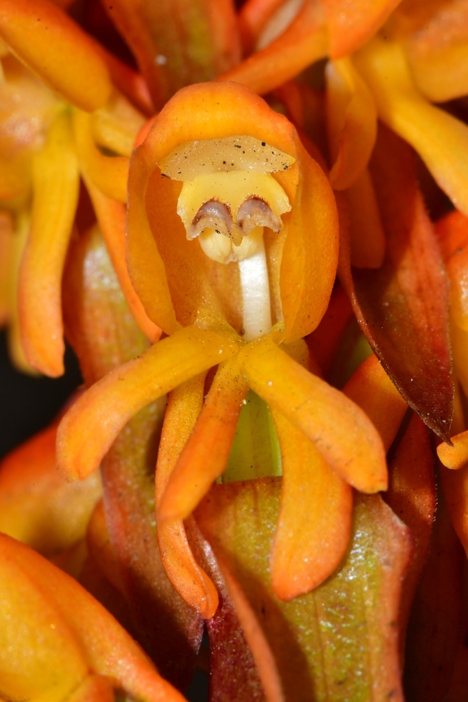 Satyrium coriifolium is a species of orchid endemic to the Cape Provinces. It is commonly known as the orange satyre or Ewwa-trewwa in Afrikaans.