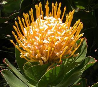 Abu Shawka [Public domain], from Wikimedia Commons (https://upload.wikimedia.org/wikipedia/commons/5/54/Leucospermum_conocarpodendron_-_Table_Mountain_6.JPG)