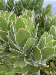 Threats: "home owners living inside the natural distribution range have planted the subsp. viridum in their gardens, which is known to hybridize with subsp. conocarpodendron. This species is bird pollinated and the wild plants are easily within range of the cultivated plants. Cross pollination will contaminate the gene pool and the subspecies could be permanently changed and even wiped out. Home owners inside the distribution range are advised not to grow the subsp. viridum and should remove any plants from their gardens."