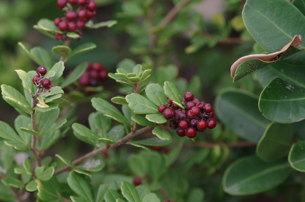 Lots of fruit for birds. Many butterflies breed on Searsia species.