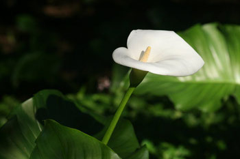 The white arum may be used as a marginal plant along streams, or on the edge of a pond. Plant in partial shade if there is no permanent water. It can be planted as a foliage plant in deep shade under trees but will not flower well in this position. It is fast growing and likes very rich, well-drained conditions.