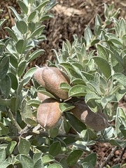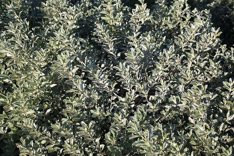 This small silvery, rounded shrub has attractive, soft shiny leaves and small, pretty pink flowers in winter which are followed by unusual swollen seed pods.