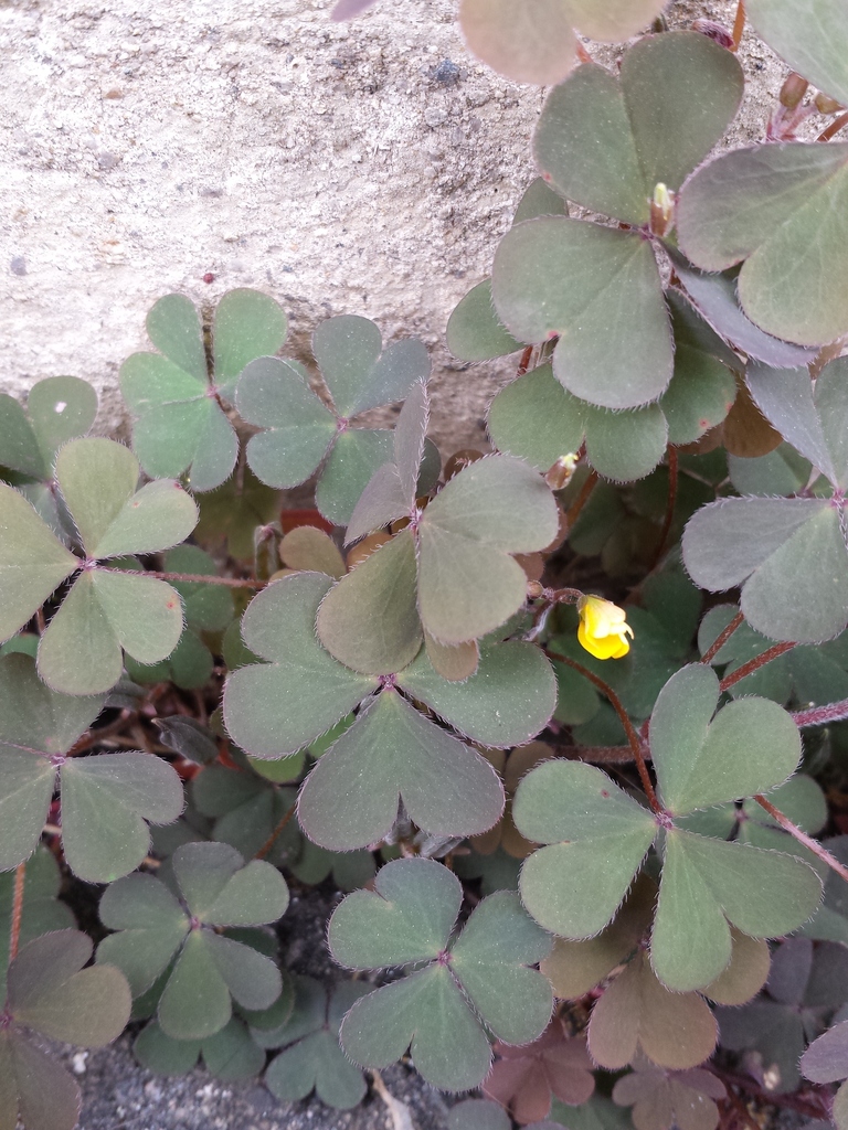 Oxalis corniculata, the creeping woodsorrel, procumbent yellow sorrel or sleeping beauty, is a somewhat delicate-appearing, low-growing herbaceous plant in the family Oxalidaceae.
