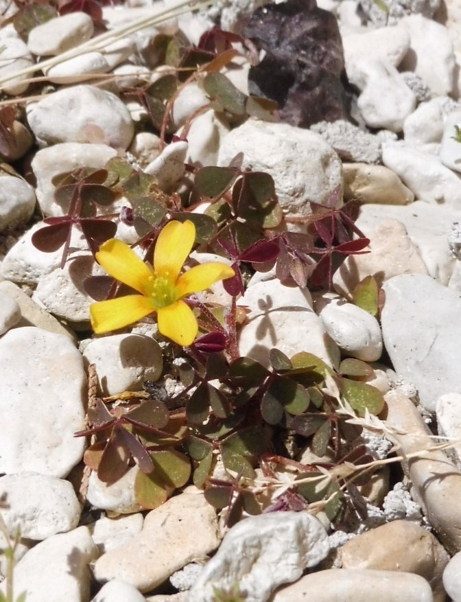 Oxalis corniculata, the creeping woodsorrel, procumbent yellow sorrel or sleeping beauty, is a somewhat delicate-appearing, low-growing herbaceous plant in the family Oxalidaceae.