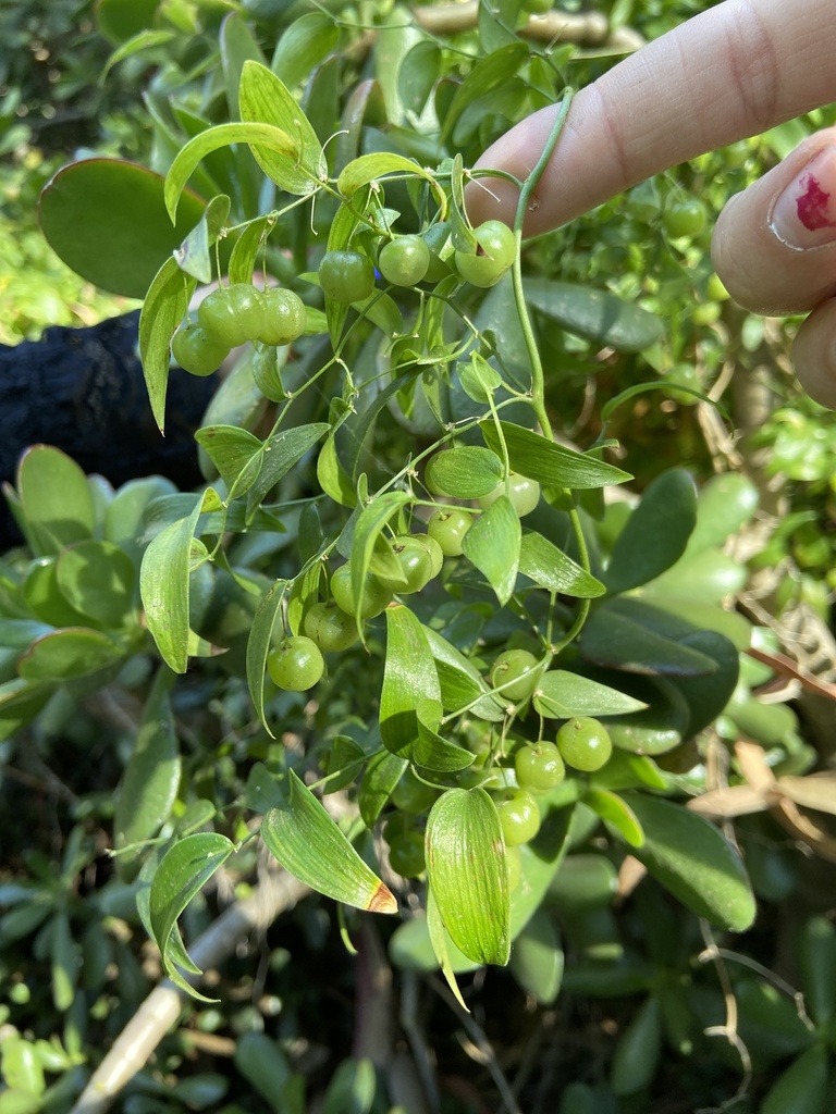Asparagus asparagoides, often under the name smilax, is commonly used in floral arrangements or home decorating.