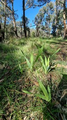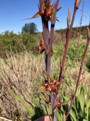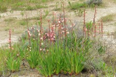 The flowers sometimes yield capsule fruits which contain seed, but the plant often reproduces via bulbils (strictly speaking, cormlets) that form in clusters in the axils of bracts at nodes along the peduncle. The bulbils can sprout if dropped into the soil, sometimes forming dense colonies, as can sections of corm that are chopped and dispersed by plowing or by non-intensive feeding by root-eating animals. In its native habitat, the plant is valuable as food for local mole-rats (Cryptomys and Georychus species), and for Cape porcupines (Hystrix africaeaustralis)
