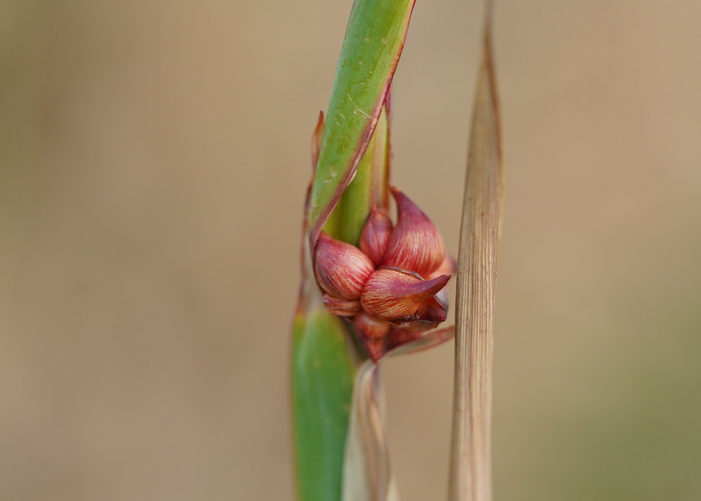 The flowers sometimes yield capsule fruits which contain seed, but the plant often reproduces via bulbils (strictly speaking, cormlets) that form in clusters in the axils of bracts at nodes along the peduncle. The bulbils can sprout if dropped into the soil, sometimes forming dense colonies, as can sections of corm that are chopped and dispersed by plowing or by non-intensive feeding by root-eating animals. In its native habitat, the plant is valuable as food for local mole-rats (Cryptomys and Georychus species), and for Cape porcupines (Hystrix africaeaustralis)
