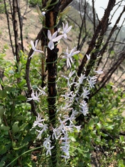 Cyphia volubilis is a species of flowering plant in the genus Cyphia, endemic to the Western Cape. It is a type of Fynbos climbing plant that uses a host to get its own flowers above ground. It has a bilabiate corolla; with 3 lobes on top and 2 at the bottom.