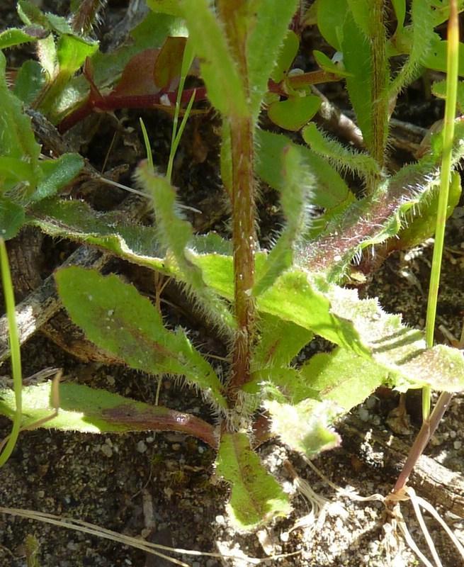 Wahlenbergia capensis is an annual herb with a one to a few stems and grows to a height of 14–50 cm (6–20 in). The lower leaves are egg-shaped to elliptic but become lance-shaped higher up. They are 9–40 mm (0.4–2 in) long and 1.5–10 mm (0.06–0.4 in) wide, sometimes with wavy edges and small teeth or lobes. Each plant has up to four bluish-green long stalked flowers that are dark blue near the centre and often have black spots. The five sepals are triangular, 4–7.5 mm (0.2–0.3 in) long and hairy. The petals form a tube, bell-shaped near the base with five spreading, egg-shaped to broadly elliptic lobes, 6–11 mm (0.2–0.4 in) long and 3–7.5 mm (0.1–0.3 in) wide. The five stamens have a filament 2.5–4 mm (0.1–0.2 in) long and an anther 2–3.5 mm (0.08–0.1 in) long. The style is dark blue with five branches on its tip. Flowering occurs from September to December. The fruit is a capsule 5–11 mm (0.2–0.4 in) long and 5–9 mm (0.2–0.4 in) wide.