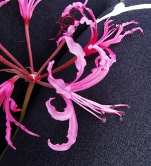 Nerine humilis, commonly known as dwarf nerine, is a species of flowering plant in the subfamily Amaryllidoideae of the family Amaryllidaceae, native to the Cape of South Africa. Growing to 40 cm (16 in) tall, it is a variable (polymorphic) bulbous perennial with narrow leaves appearing at the same time as umbels of 1–12 slender, crenellated flowers in shades of pink, in autumn. It is a summer dormant deciduous species, meaning that the top growth disappears for a period during summer months. Plants can be found in large colonies in their native habitat, the Fynbos of the Cape Floristic Region, appearing to respond well to the frequent fires in the area.