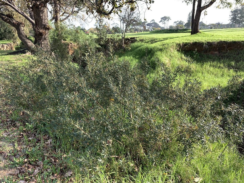 The multi-stemmed willow karee bush grows to a height of about 4 meters (13 ft). It has trifoliate leaves with dark green surfaces and grey furry undersides.