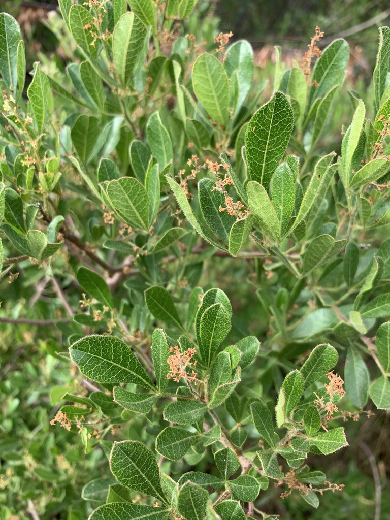 Searsia laevigata, the dune currant rhus, is a small, bushy, evergreen tree that occurs in rocky fynbos slopes and coastal shrub in South Africa.