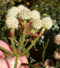 Berzelia abrotanoides is propagated by seed and cuttings. Seed is sown in early autumn (February to March) and should be treated with smoke extract before sowing. Seed trays must be kept moist and shaded.Grow Berzelia species in a well ventilated, semi-shaded to fully sunny position amongst other moisture loving fynbos species. They do best in acidic soils that are moist but well-drained. The soils should contain organic matter such as compost or leaf mould. Berzelia abrotanoides is fairly hardy, but water the plants well during dry seasons. After flowering, prune them lightly to maintain and encourage a compact bushy growth form.