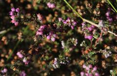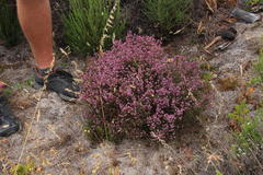 It produces numerous small urn- or cup-shaped, pink flowers, which are clustered at the ends of short branchlets. The flowers are only about 3 mm long and slightly constricted at the mouth from which the anthers protrude. The overall effect is a petite plant that is rather attractive when in flower in early summer (November and December).