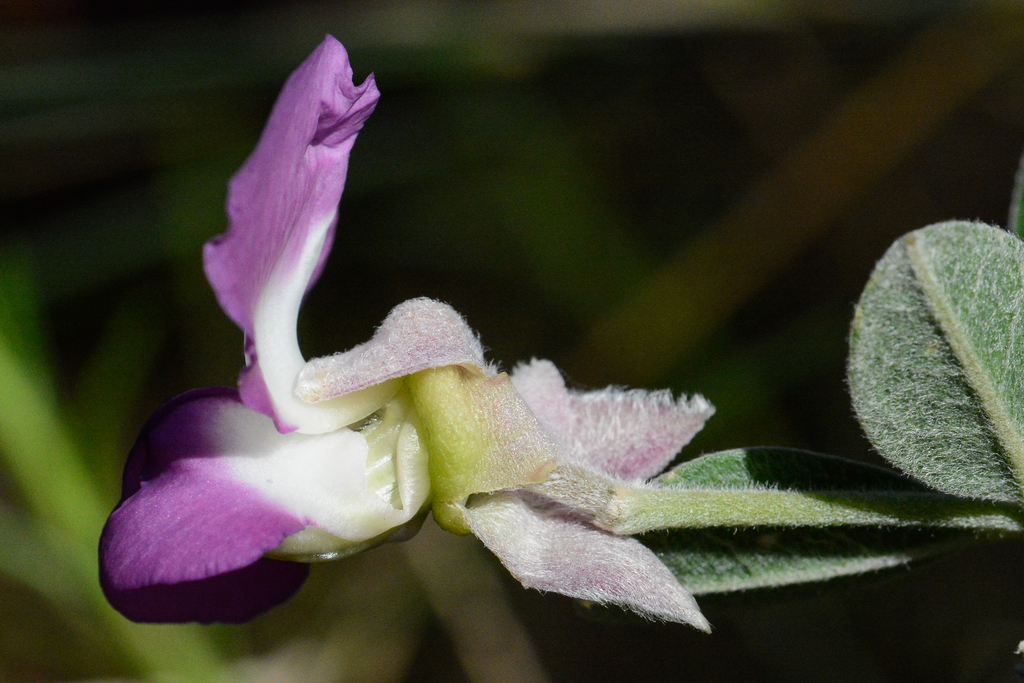 Podalyria calyptrata is a small, tough, fast-growing tree around 4 meters in height. The simple, oval leaves are silvery grey and velvety in texture.