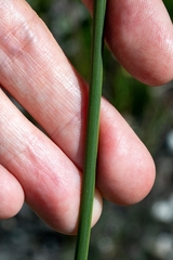 Tufted perennial to 1m or more with trailing, cylindrical leaves that are longer than the stems; bears yellow, star-shaped flowers in a dense head comprising 6-40 individual clusters subtended by a green spathe with a long, needle-like tip.