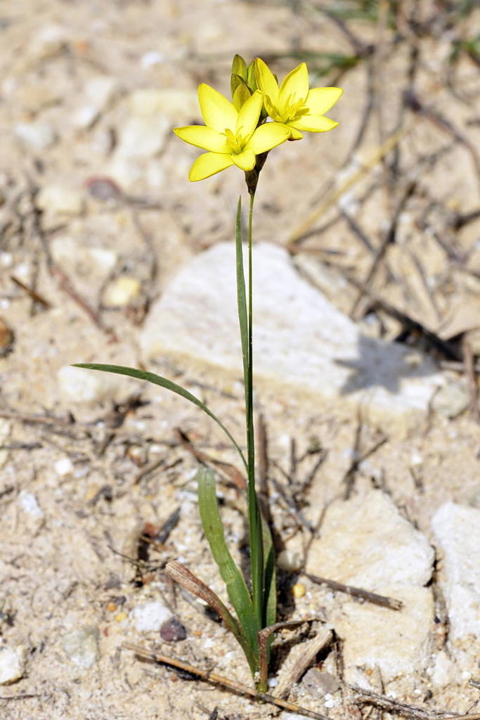 Ixia maculata is a species of flowering plant in the family Iridaceae known by the common name spotted African corn lily. It is native to the Cape Provinces of South Africa, but it is grown widely as an ornamental plant. It can also be found growing wild as an introduced species in several areas, including Western Australia. This perennial flower grows 20 to 70 centimeters tall with an erect, unbranched stem. There are a few twisting basal leaves up to 35 centimeters long. The inflorescence is a dense, showy spike of up to 12 flowers, usually orange to yellow in color, sometimes with areas of purple or red and often with spots; the coloration in garden plants varies due to breeding.