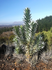 The silver tree has the reputation of being difficult in cultivation, mainly because it is very susceptible to the root rot fungus Phytophthora and like most members of the protea family dislikes soggy soils, still, humid air and strong fertilizers. But, they are actually quite easy to grow if they are treated correctly and have been known to thrive far from their natural home.Before planting, clear the site of weeds and dig in well-matured compost. Dig individual holes large enough for the root ball of each plant. Plant them about 1 m apart. During the first two years the plants must be watered regularly. By mulching with compost or wood chips to a depth of 50 mm, weed development is kept to a minimum. It is important not to dig around the base of a tree, or inside the drip line to avoid damaging the roots, as the root-rot fungus infects the plant via broken or damaged roots. Other advantages of mulching are that the soil is kept moist, soil temperatures are kept down and the plant receives nutrients as it decomposes.